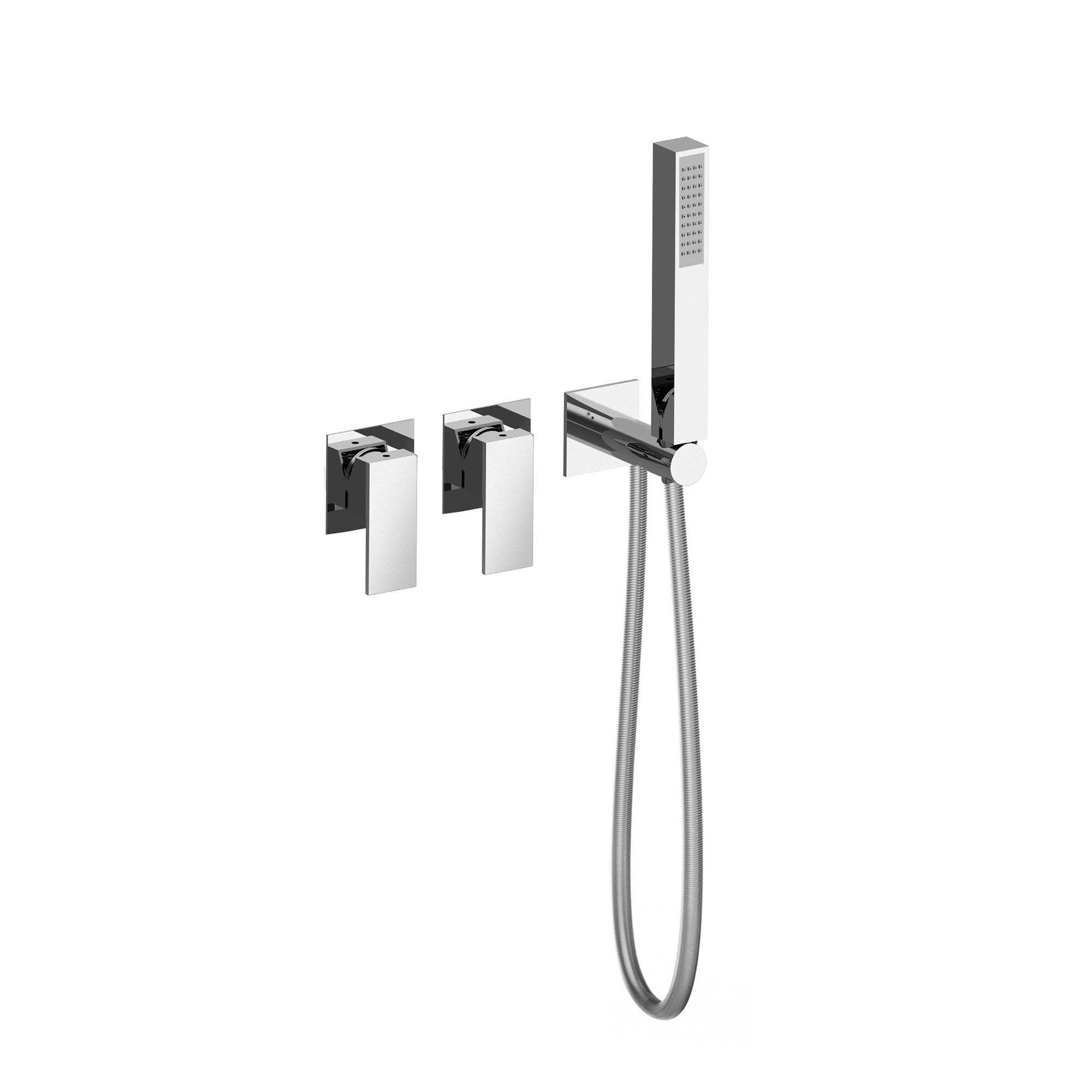 PARTI ESTERNE PER 2 MISCELATORI PER DOCCIA DA INCASSO CON SUPPORTO DOCCIA FISSO IN OTTONE CON EROGAZIONE, FLESSIBILE 1.5 E DOCCETTA.
