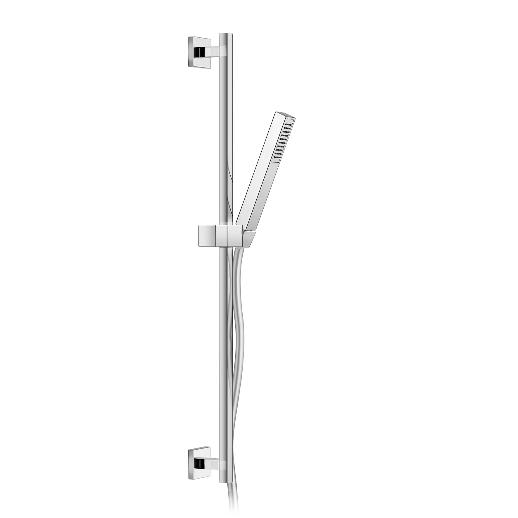TIGE DE DOUCHE EN LAITON, 16X16MM, AVEC SUPPORT DE DOUCHE RÉGLABLE EN ABS, TUYAU À DOUBLE SERTISSAGE DE 1,5 M ET MAIN DE DOUCHE EN ABS.