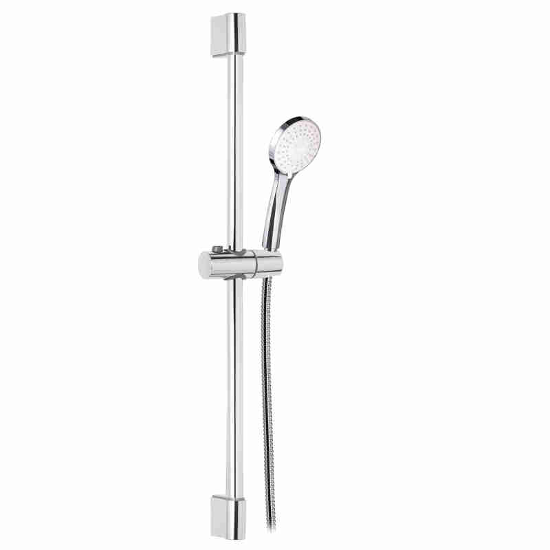 TIGE DE DOUCHE EN LAITON, Ø22mm, AVEC SUPPORT DE DOUCHE RÉGLABLE EN ABS, TUYAU DOUBLE SERTISSAGE DE 1,5M ET POIGNÉE DE DOUCHE 3 JETS ABS.