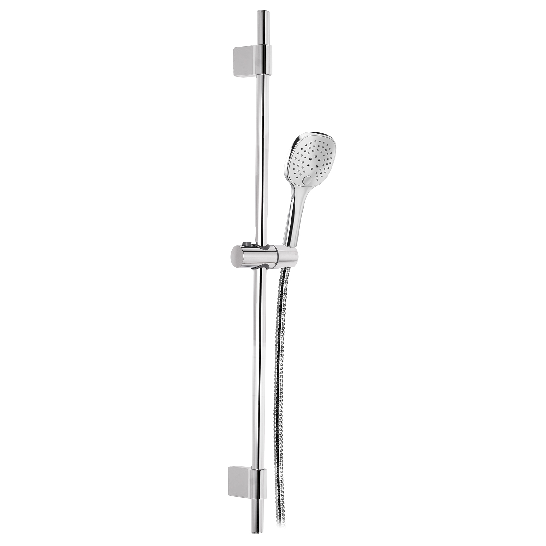 TIGE DE DOUCHE EN LAITON Ø22mm AVEC SUPPORT DE DOUCHE RÉGLABLE EN ABS, TUYAU DOUBLE SERTISSAGE DE 1,5m ET POIGNÉE DE DOUCHE 3 JETS ABS.