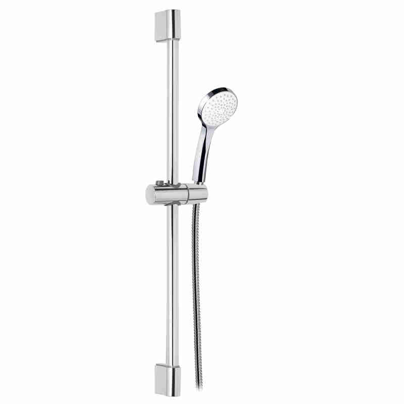 TIGE DE DOUCHE EN LAITON, Ø22mm, AVEC SUPPORT DE DOUCHE RÉGLABLE EN ABS, TUYAU À DOUBLE SERTISSAGE DE 1,5 m ET MAIN DE DOUCHE EN ABS.